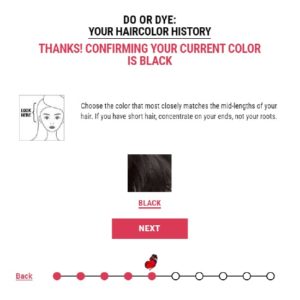 ヘアカラーに関する幾つかの質問に応えると、オススメのヘアカラーを紹介してくれます。